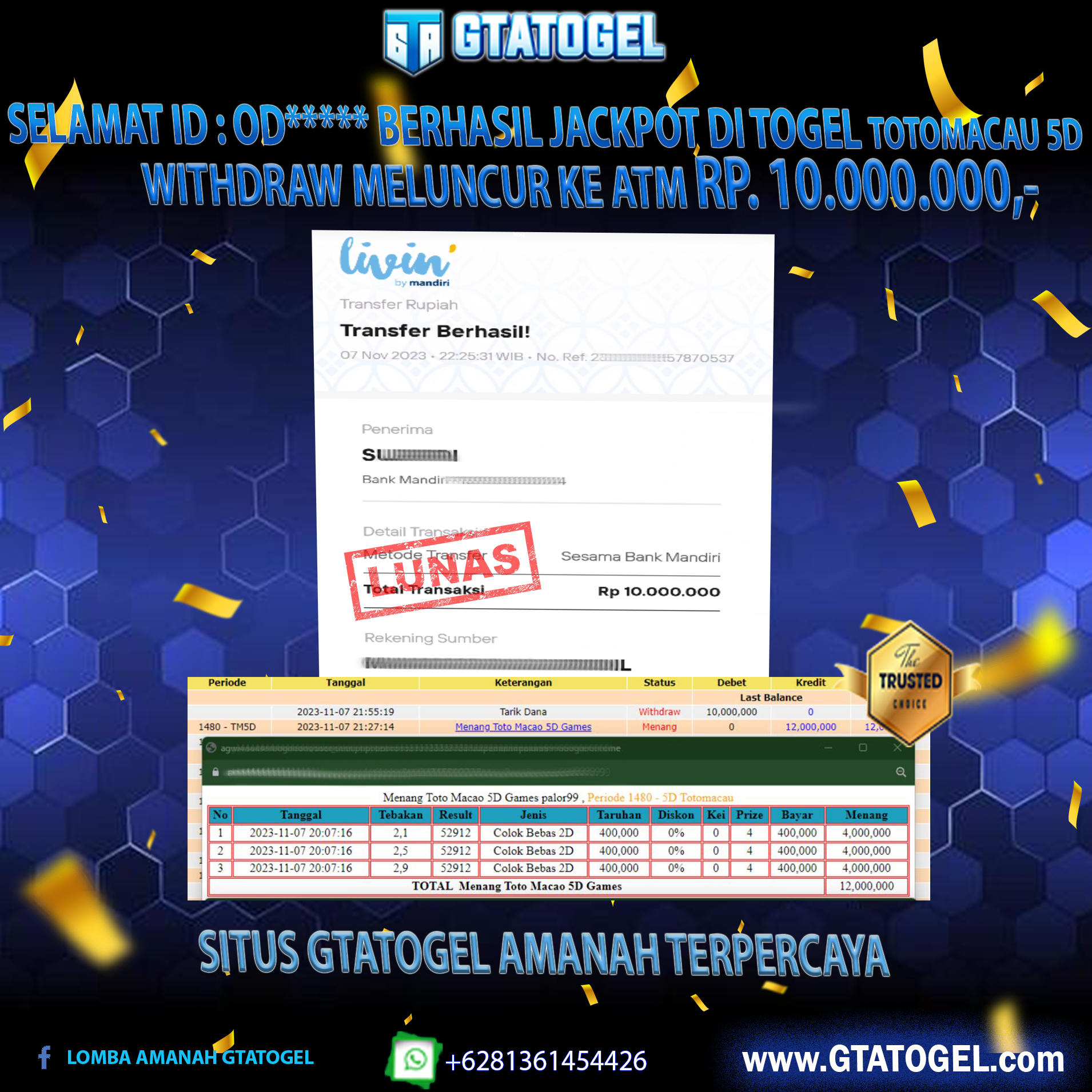 BUKTI PEMBAYARAN GTATOGEL BUKAN KALENG KALENG INI BOSKU, MENANG BERAPAPUN PASTI DI BAYAR TUNTAS !!!