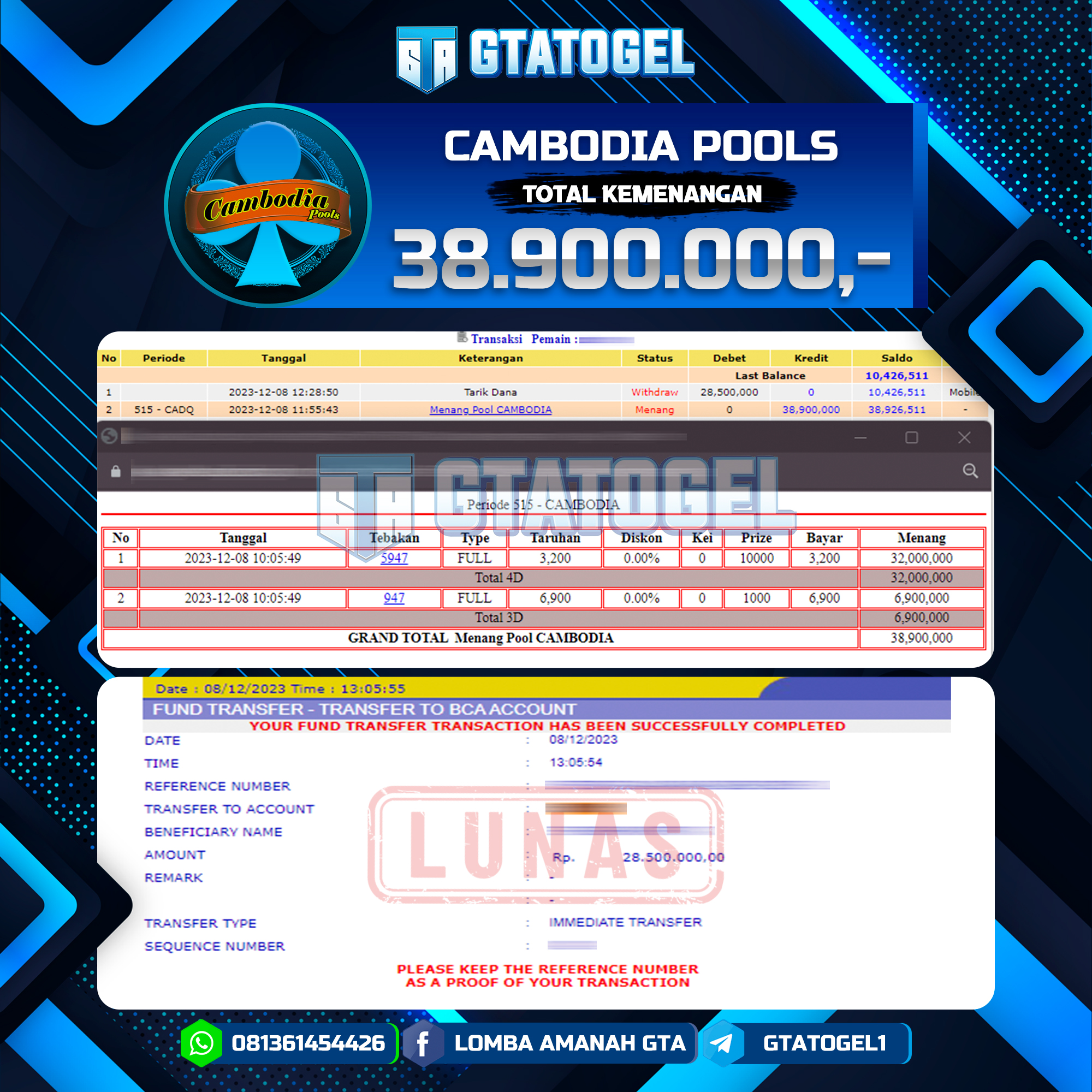 GTATOGEL – BUKTI WITHDRAW KEMENANGAN JP TOGEL CAMBODIA POOLS SEBESAR Rp. 38.900.000,- DI BAYAR LUNAS !!!