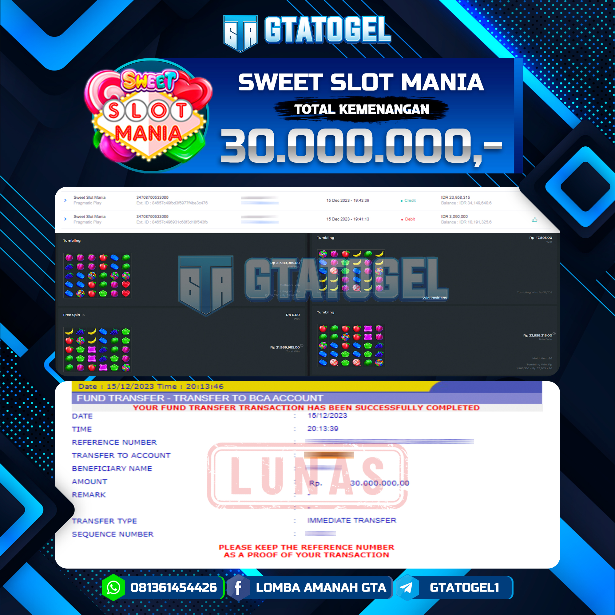 GTATOGEL – BUKTI WITHDRAW KEMENANGAN MAXWIN SLOT SWEET SLOT MANIA SEBESAR Rp. 30.000.000,- DI BAYAR LUNAS !!!