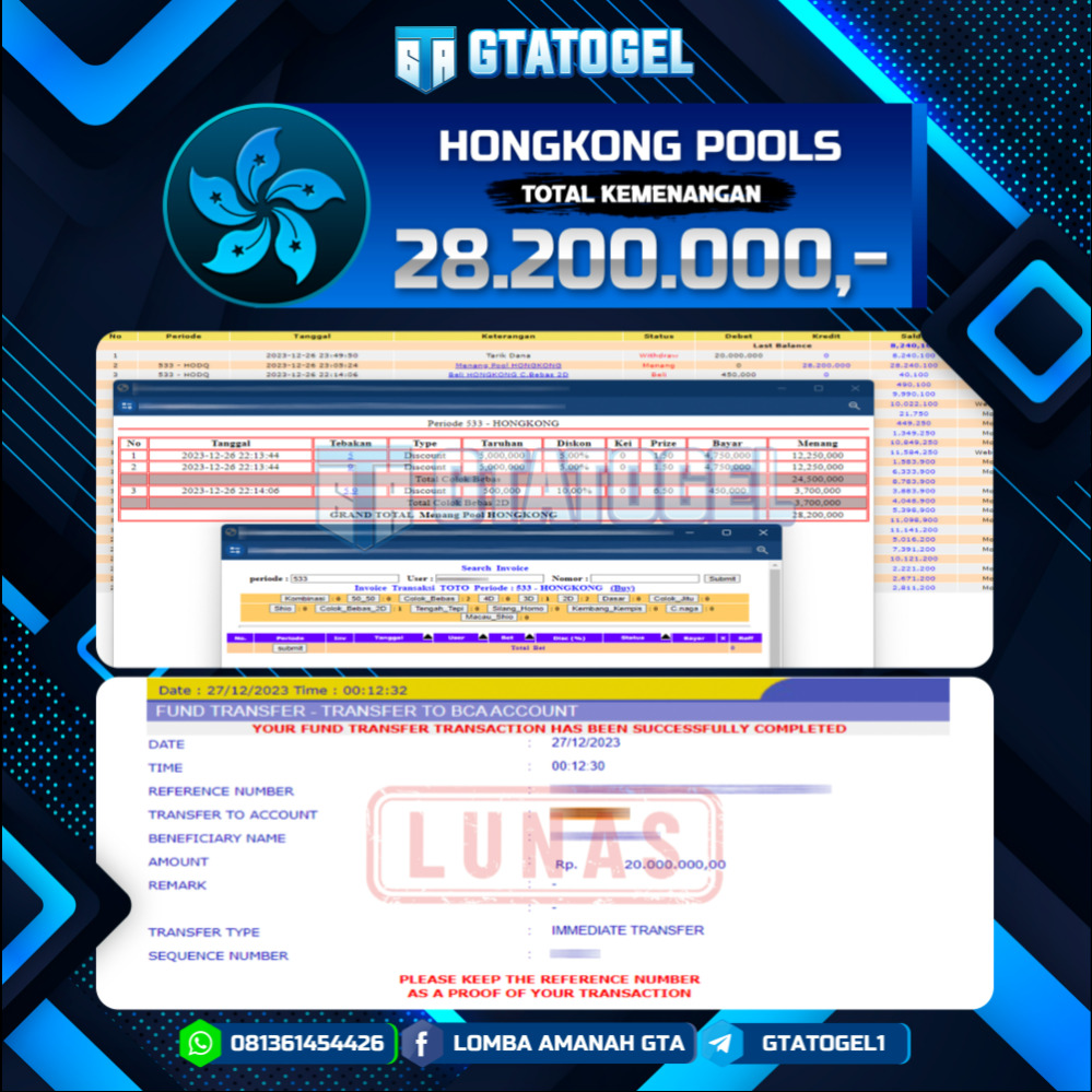 GTATOGEL – BUKTI WITHDRAW KEMENANGAN JP TOGEL HONKONG POOLS SEBESAR Rp. 28.200.000,- DI BAYAR LUNAS !!!