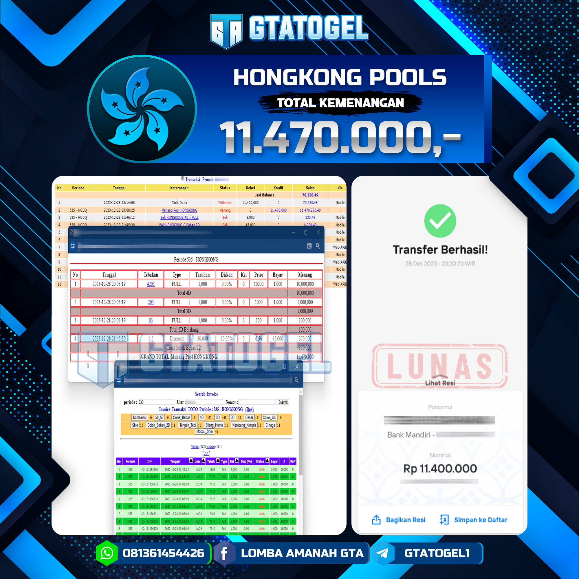 GTATOGEL – BUKTI WITHDRAW KEMENANGAN JP TOGEL HONKONG POOLS SEBESAR Rp. 11.470.000,- DI BAYAR LUNAS !!!