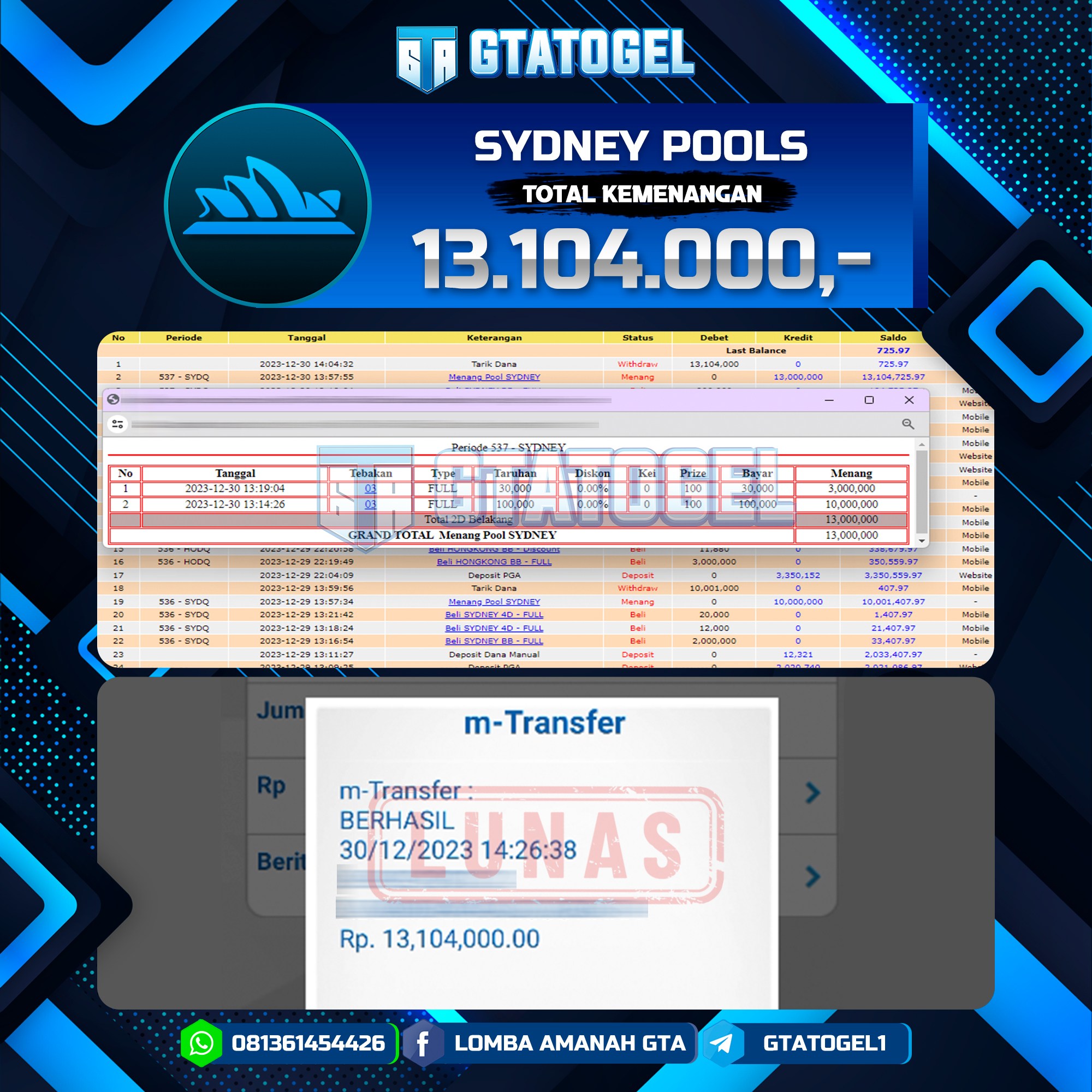 GTATOGEL – BUKTI WITHDRAW KEMENANGAN JP TOGEL SYDNEY POOLS SEBESAR Rp. 13.104.000,- DI BAYAR LUNAS !!!