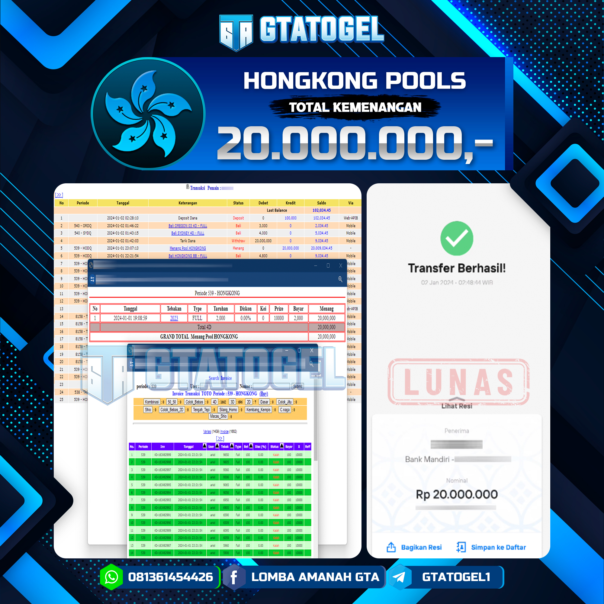 GTATOGEL – BUKTI WITHDRAW KEMENANGAN JP TOGEL HONKONG POOLS SEBESAR Rp. 20.000.000,- DI BAYAR LUNAS !!!
