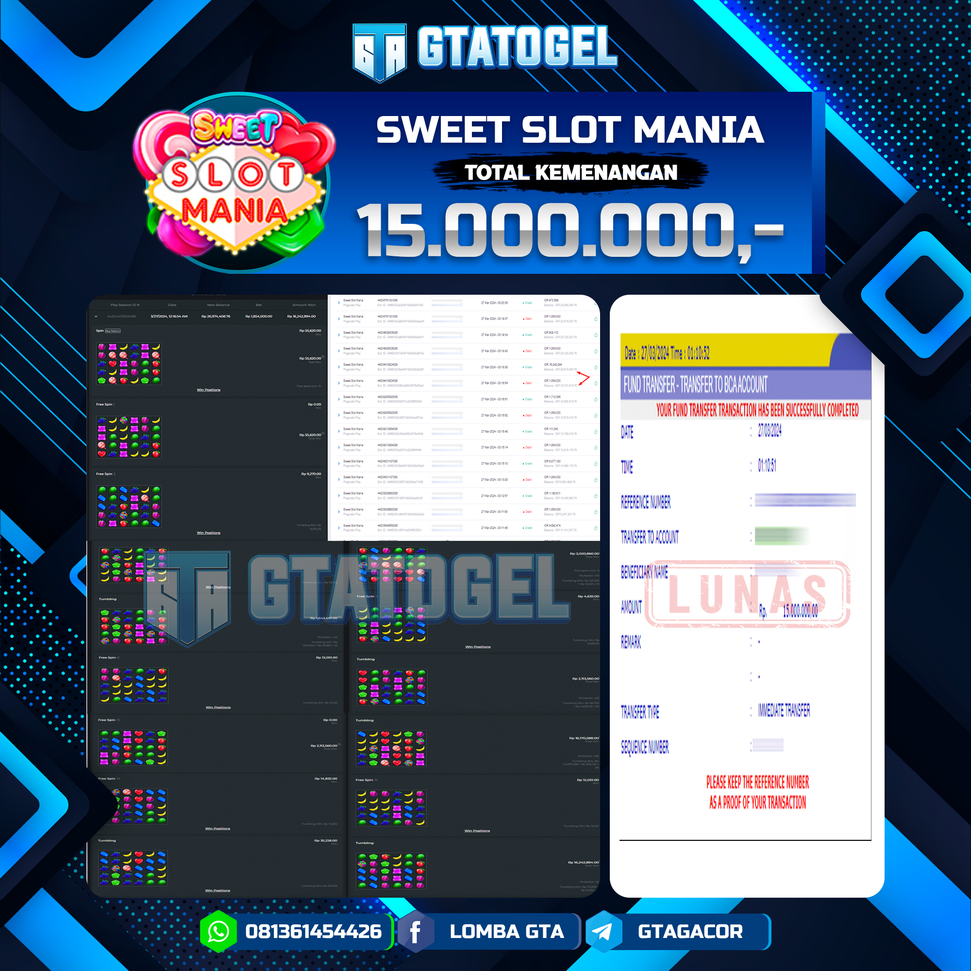 GTATOGEL – BUKTI WITHDRAW KEMENANGAN JP SLOT SWEET SLOT MANIA Rp. 15.000.000,- DI BAYAR LUNAS !!!