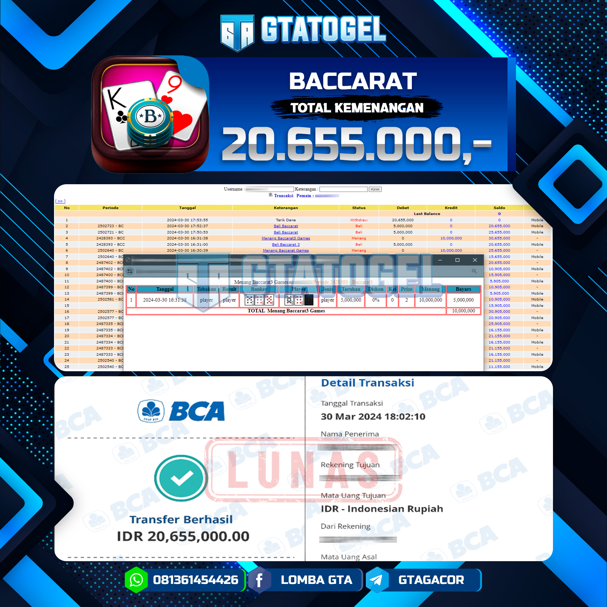 GTATOGEL – BUKTI WITHDRAW KEMENANGAN JP SLOT BACCARAT Rp. 20.655.000,- DI BAYAR LUNAS !!!
