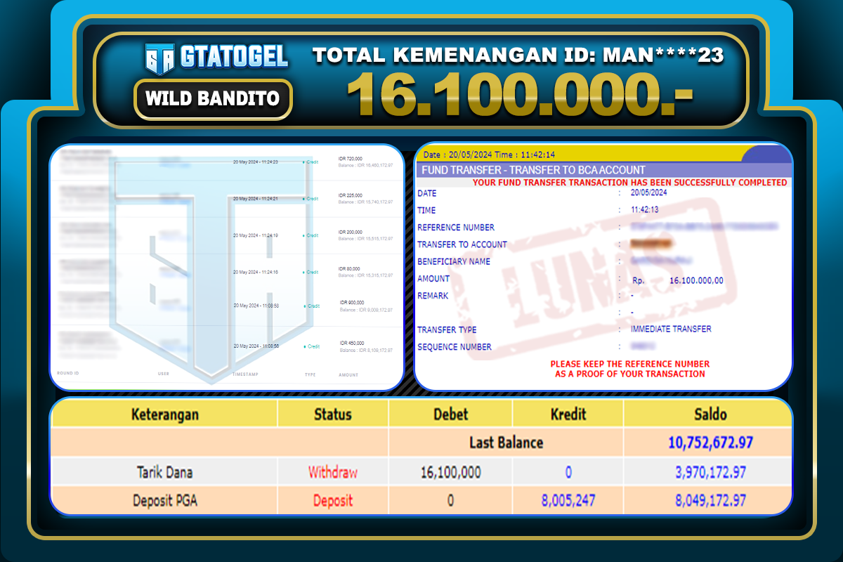 Bukti Withdraw Situs GTATOGEL Resmi & Terpercaya 2023 – 2024