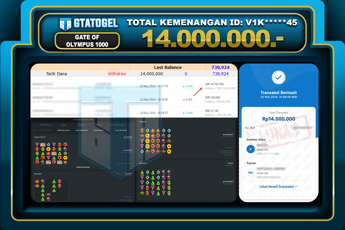 GTATOGEL – BUKTI WITHDRAW KEMENANGAN JP GATE OF OLYMPUS Rp. 14.000.000,- DI BAYAR LUNAS !!!