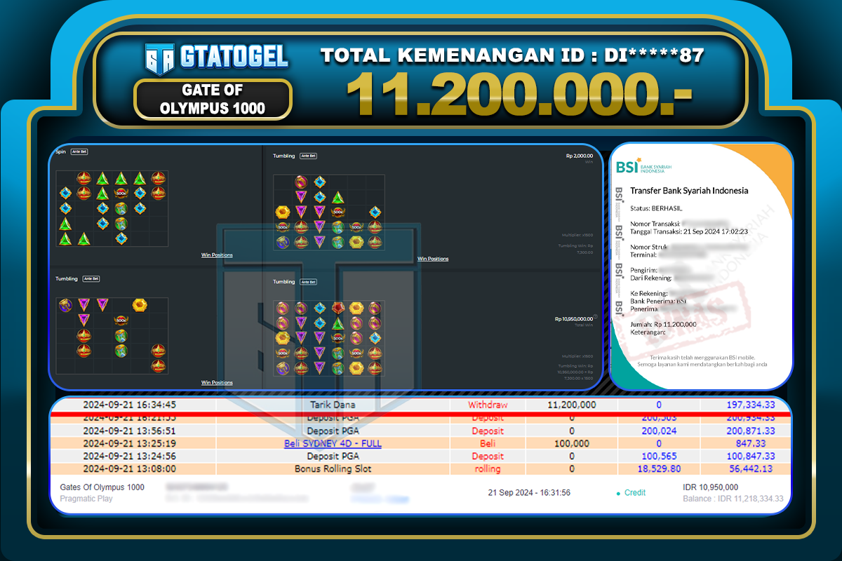 GTATOGEL – BUKTI WITHDRAW KEMENANGAN JP GATE OF OLYMPUS 1000 Rp.11.200.000,- DI BAYAR LUNAS !!!