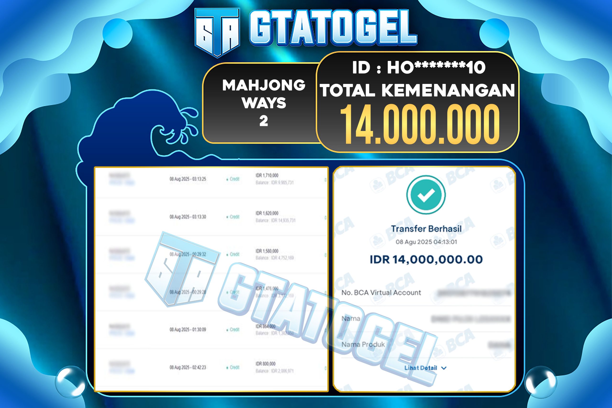 GTATOGEL – BUKTI WITHDRAW KEMENANGAN JP MAHJONG WAYS 2 Rp.14.000.000,- DI BAYAR LUNAS !!!
