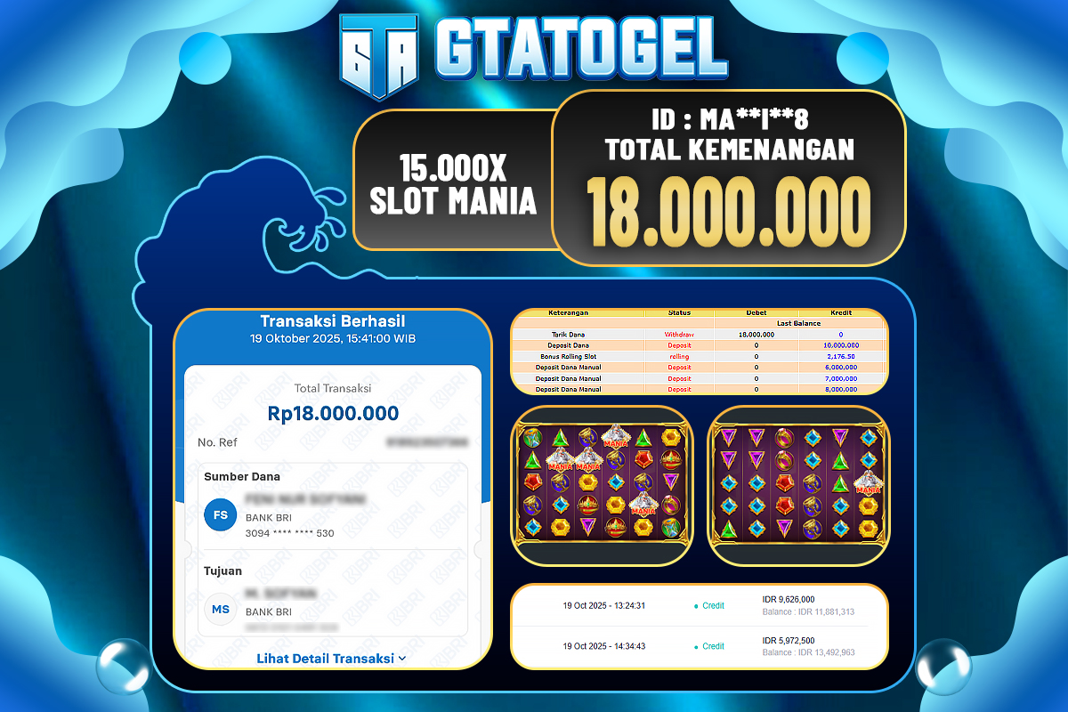 GTATOGEL – BUKTI WITHDRAW KEMENANGAN JACKPOT 15.000X SLOT MANIA Rp.18.000.000,- DI BAYAR LUNAS !!!