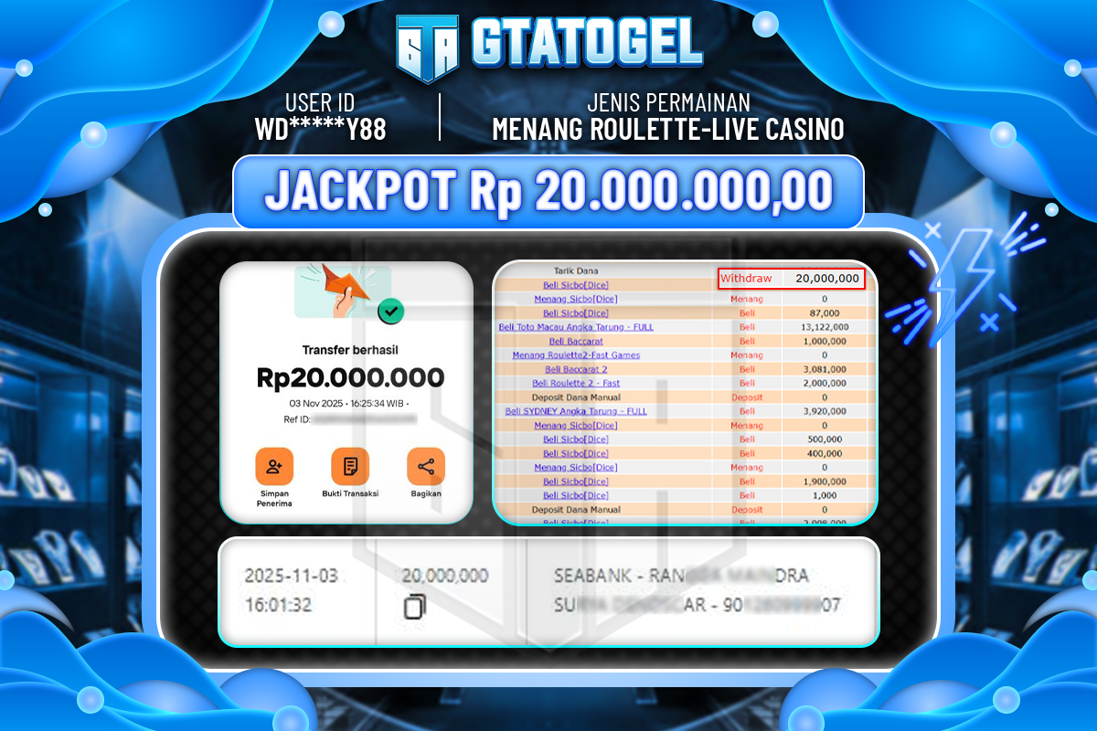 GTATOGEL – BUKTI WITHDRAW KEMENANGAN JACKPOT ROULETTE-LIVE CASINO Rp.20.000.000,- DI BAYAR LUNAS !!!