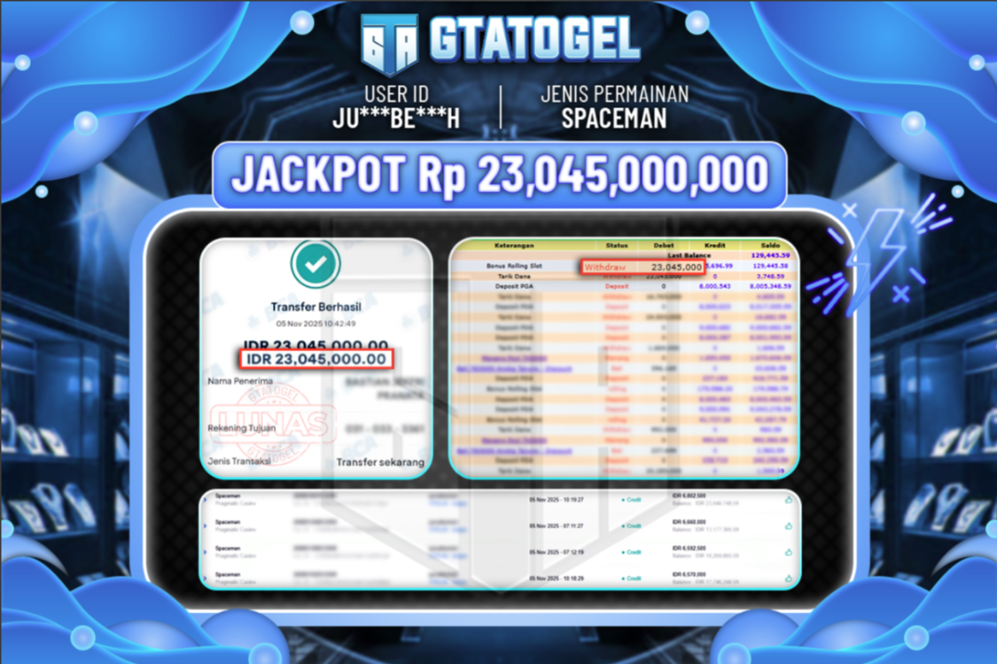 GTATOGEL – BUKTI WITHDRAW KEMENANGAN JACKPOT SPACEMAN Rp.23.045.000,- DI BAYAR LUNAS !!!