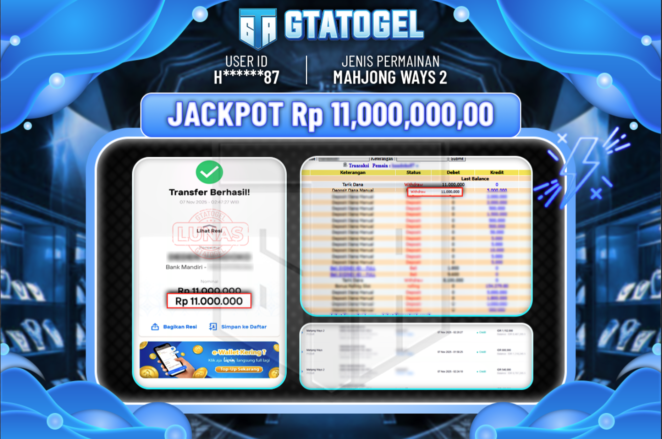 GTATOGEL – BUKTI WITHDRAW KEMENANGAN JACKPOT MAHJONG WAYS 2 Rp.11.000.000,- DI BAYAR LUNAS !!!