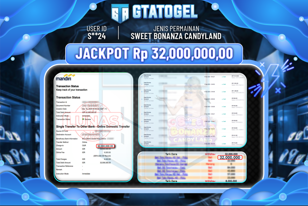 GTATOGEL – BUKTI WITHDRAW KEMENANGAN JP SWEET BONANZA CANDYLAND Rp.32.000.000,- DI BAYAR LUNAS !!!