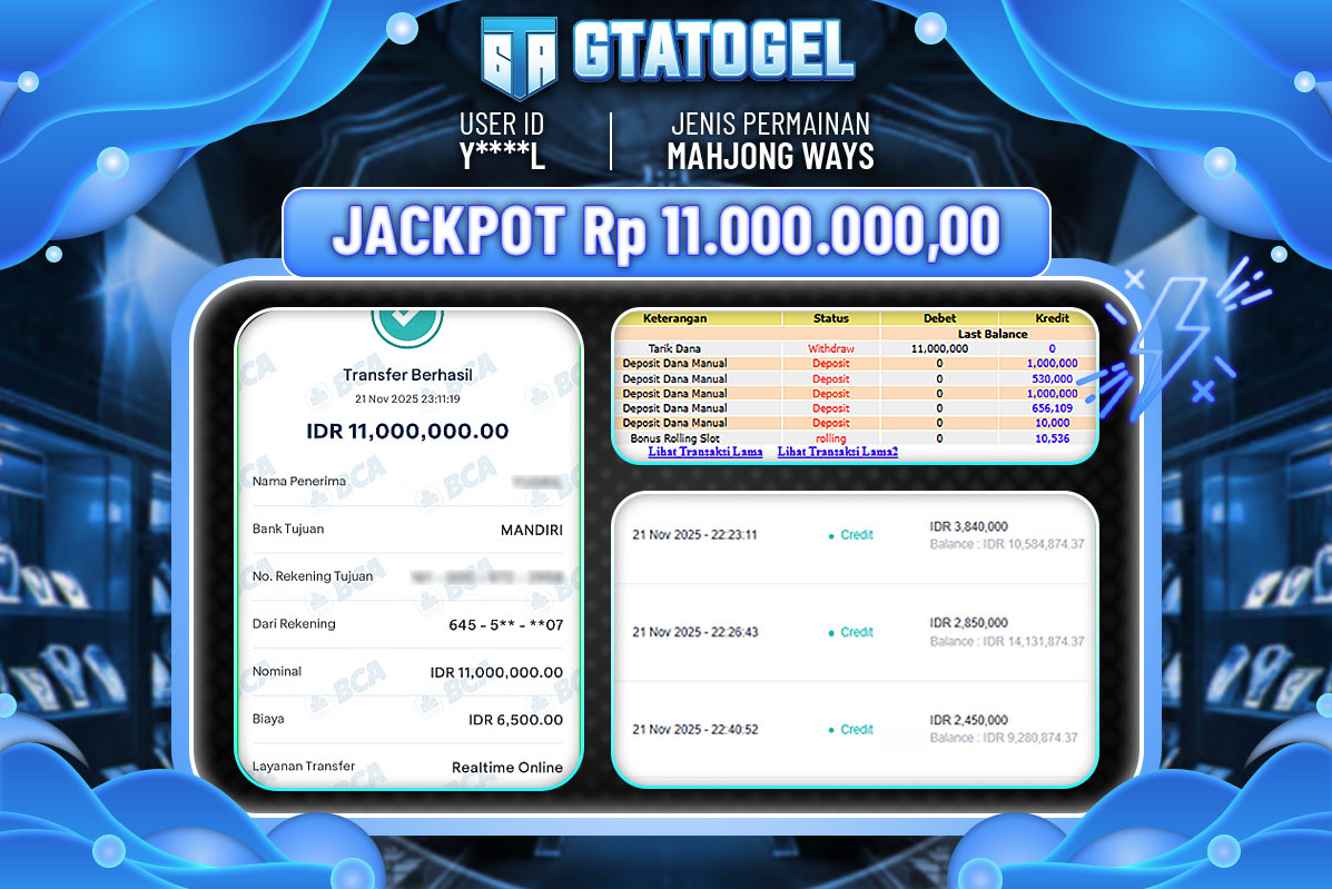 GTATOGEL – BUKTI WITHDRAW KEMENANGAN JP MAHJONG WAYS Rp.11.000.000,- DI BAYAR LUNAS !!!