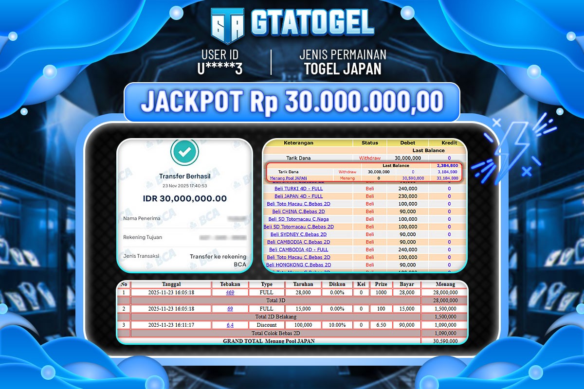GTATOGEL – BUKTI WITHDRAW KEMENANGAN JP TOGEL JAPAN Rp.30.000.000,- DI BAYAR LUNAS !!!