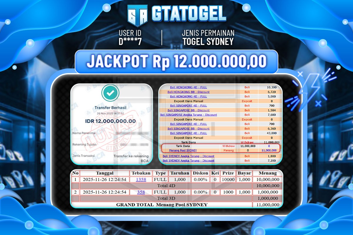 GTATOGEL – BUKTI WITHDRAW KEMENANGAN JACKPOT TOGEL SYDNEY Rp.12.000.000,- DI BAYAR LUNAS !!!