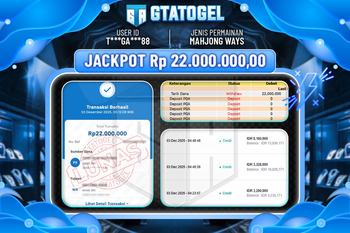 GTATOGEL – BUKTI WITHDRAW KEMENANGAN JACKPOT MAHJONG WAYS Rp.22.000.000,- DI BAYAR LUNAS !!!