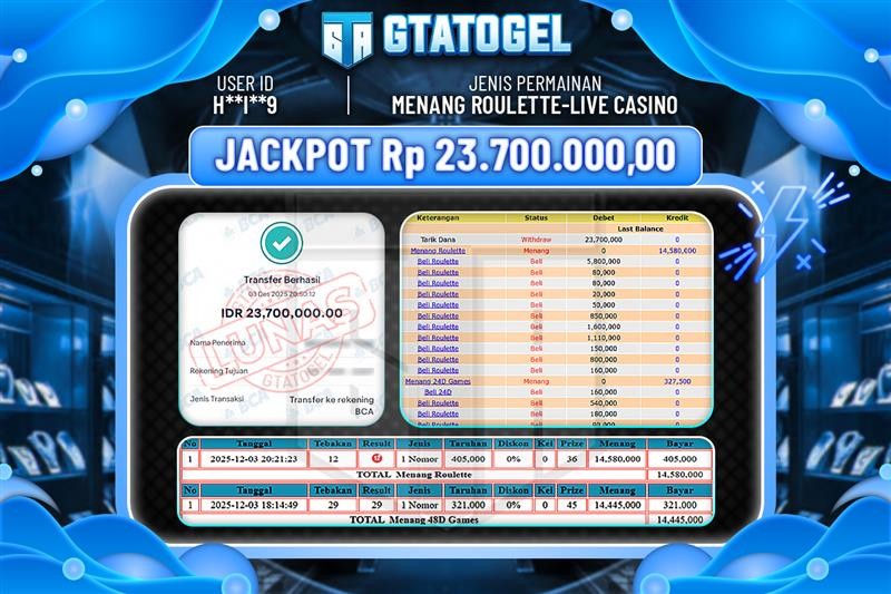 GTATOGEL – BUKTI WITHDRAW KEMENANGAN JACKPOT ROULETTE-LIVE CASION Rp.23.700.000,- DI BAYAR LUNAS !!!