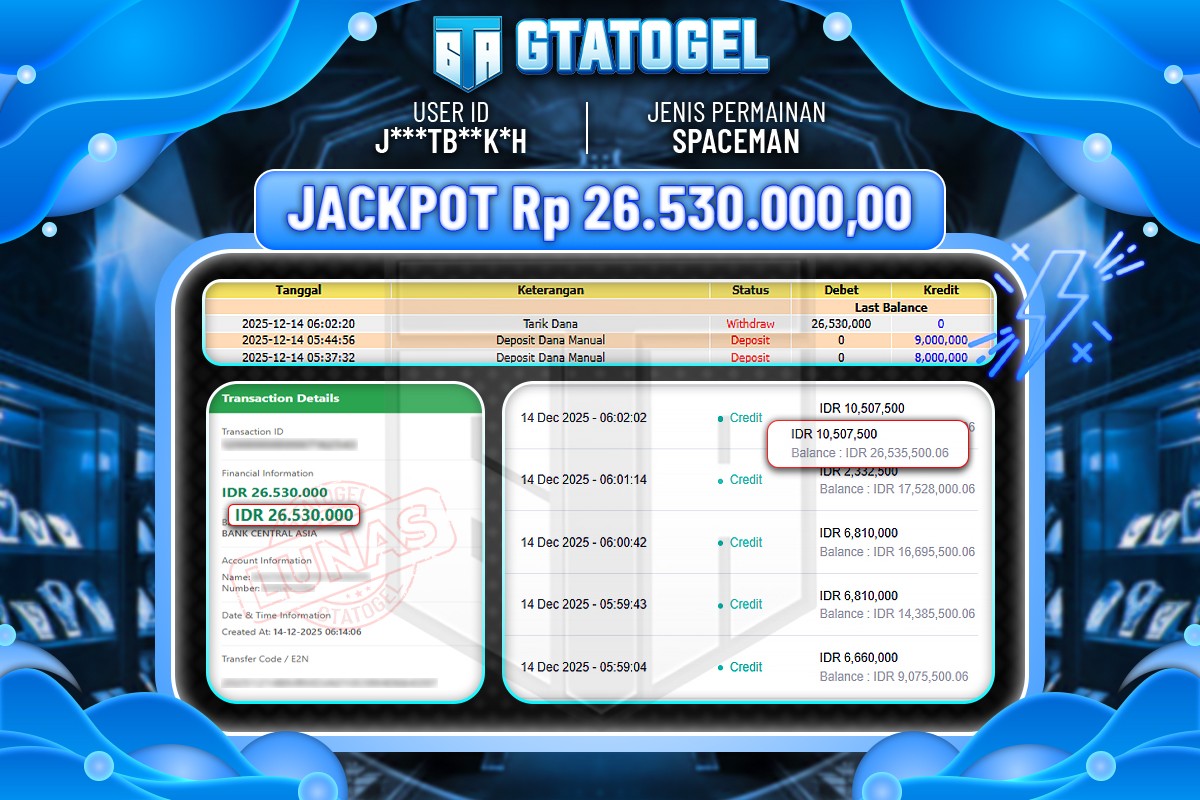 GTATOGEL – BUKTI WITHDRAW KEMENANGAN JACKPOT SPACEMAN Rp.26.530.000,- DI BAYAR LUNAS !!!