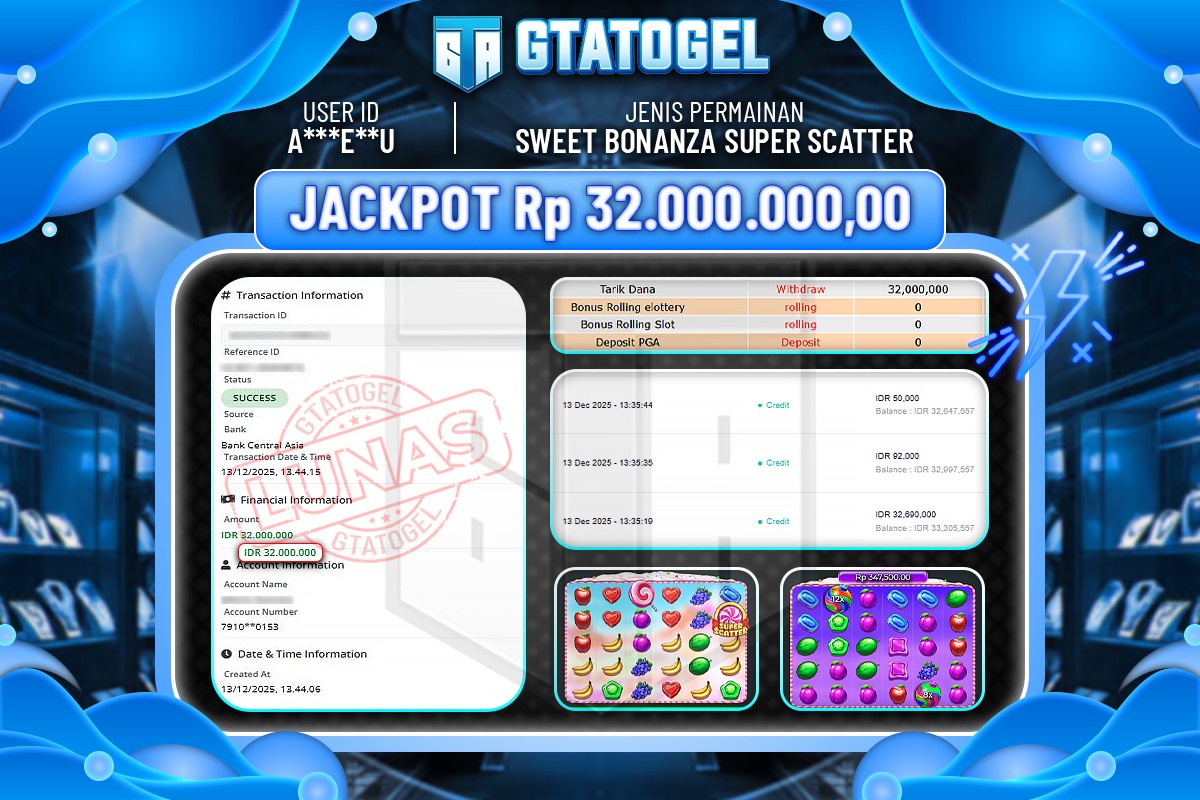 GTATOGEL – BUKTI WITHDRAW KEMENANGAN JACKPOT SWEET BONANZA SUPER SCATTER Rp.32.000.000,- DI BAYAR LUNAS !!!