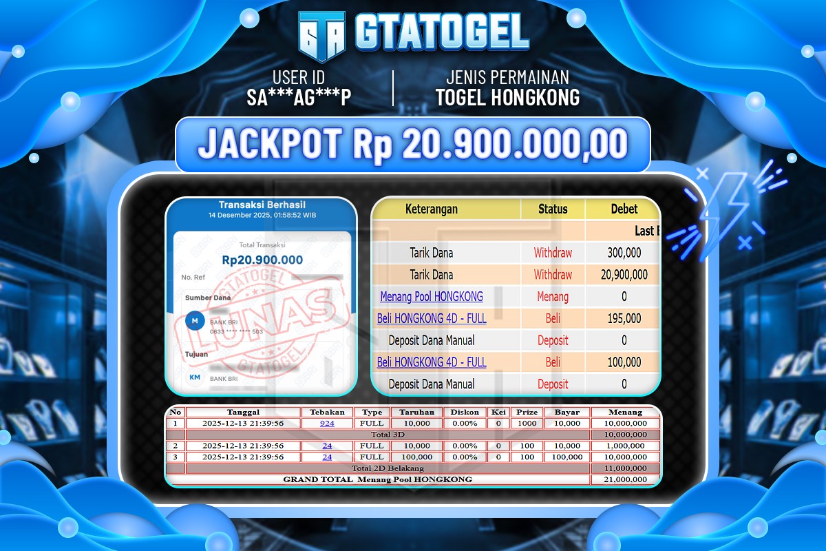 GTATOGEL – BUKTI WITHDRAW KEMENANGAN JACKPOT TOGEL HONGKONG Rp.20.900.000,- DI BAYAR LUNAS !!!