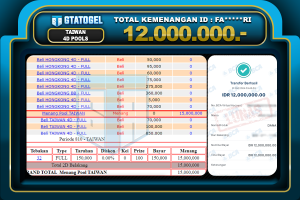 GTATOGEL – BUKTI WITHDRAW KEMENANGAN JP TAIWAN 4D POOLSp.12.000.000,- DI BAYAR LUNAS !!! Bukti Withdraw Situs GTATOGEL...