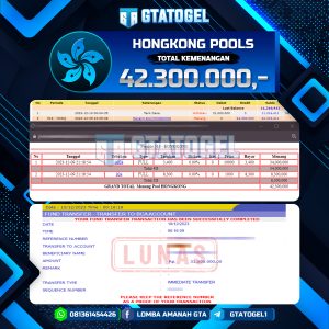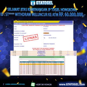 GTATOGEL – BUKTI WITHDRAW KEMENANGAN JP TOGEL HONGKONG POOLS SEBESAR Rp. 42.300.000,- DI BAYAR LUNAS !!! Bukti...
